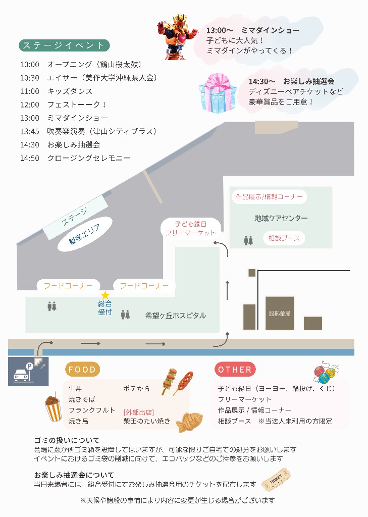 - 開催場所:希望ヶ丘ホスピタル駐車場・地域ケアセンター